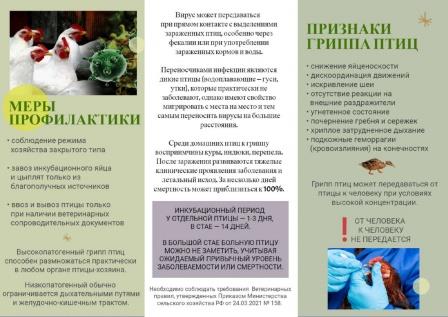 ПАМЯТКА ПО ПРОФИЛАКТИКЕ ГРИППА ПТИЦ