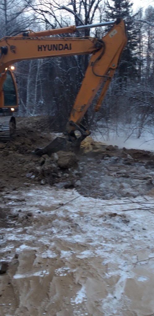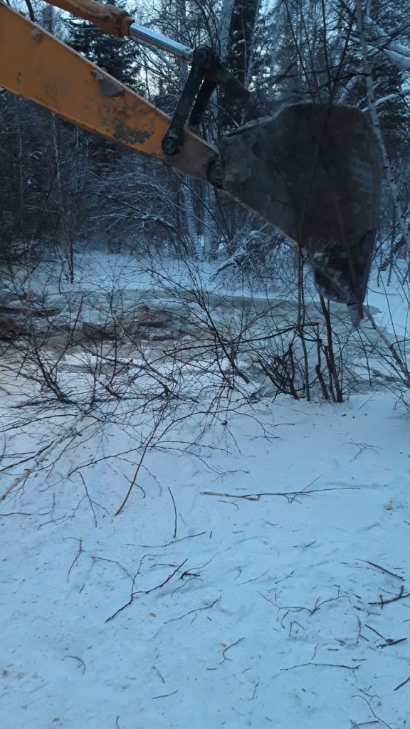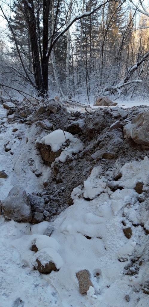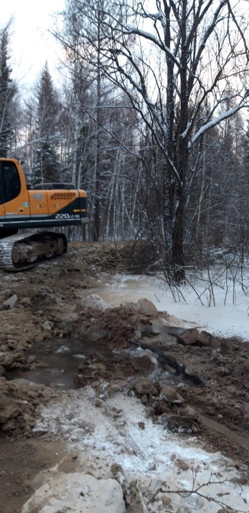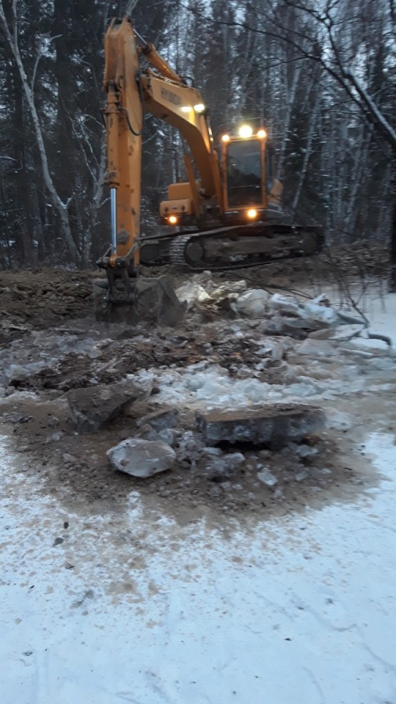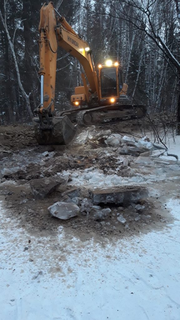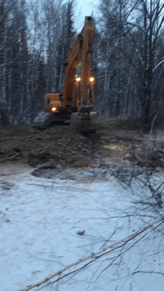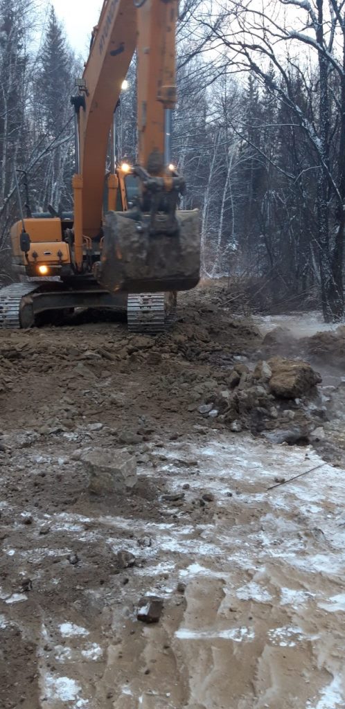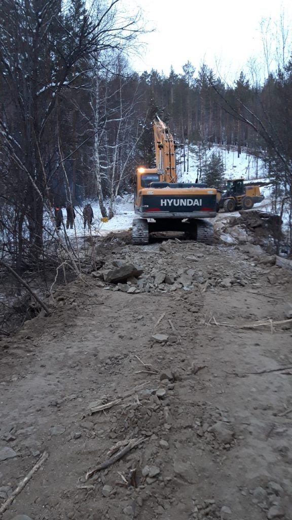 2.Повторное восстановление временной дамбы путем отсыпания грунтом скалистых пород в количестве 6 самосвалов (120т). Подрядчик ИП «Баташов» 6 чел, 4 ед. техн. (экскаватор, трал, самосвал «Камаз», УАЗ вахта). Создана временная дамба протяженностью около 100 м., высота от 2 до 2,5 м.