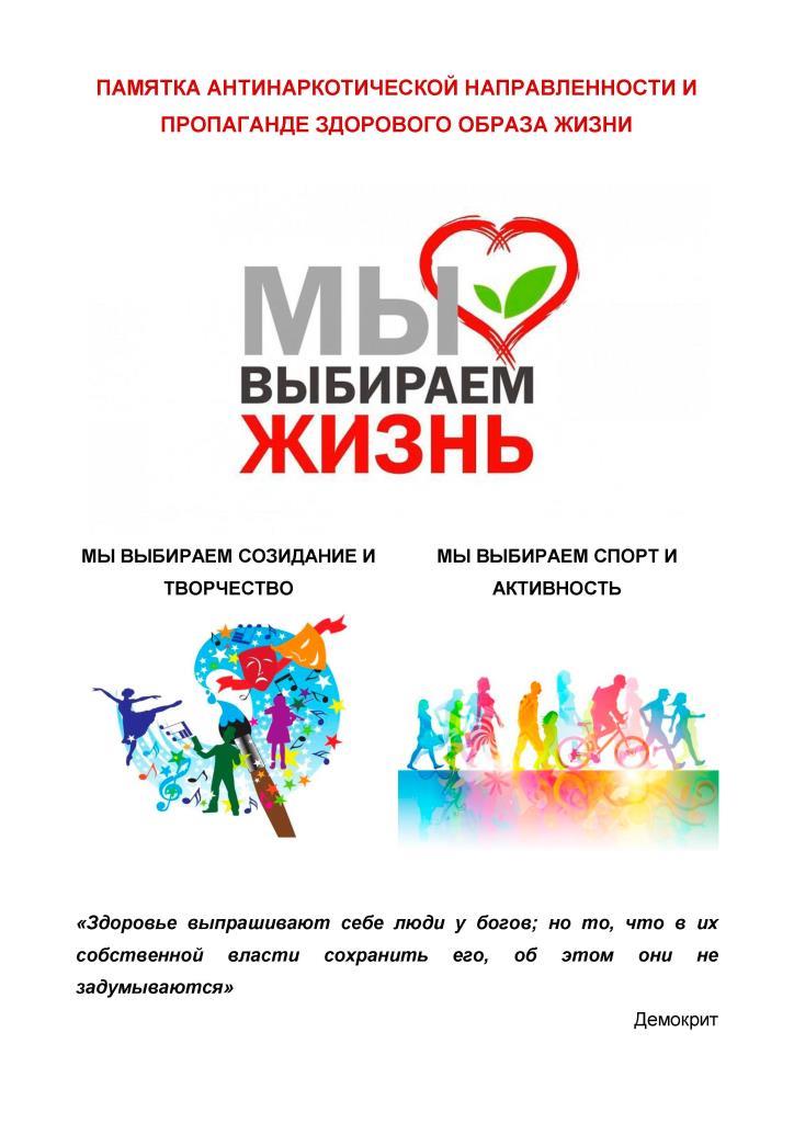 ПАМЯТКА АНТИНАРКОТИЧЕСКОЙ НАПРАВЛЕННОСТИ И ПРОПАГАНДЕ ЗДОРОВОГО ОБРАЗА ЖИЗНИ