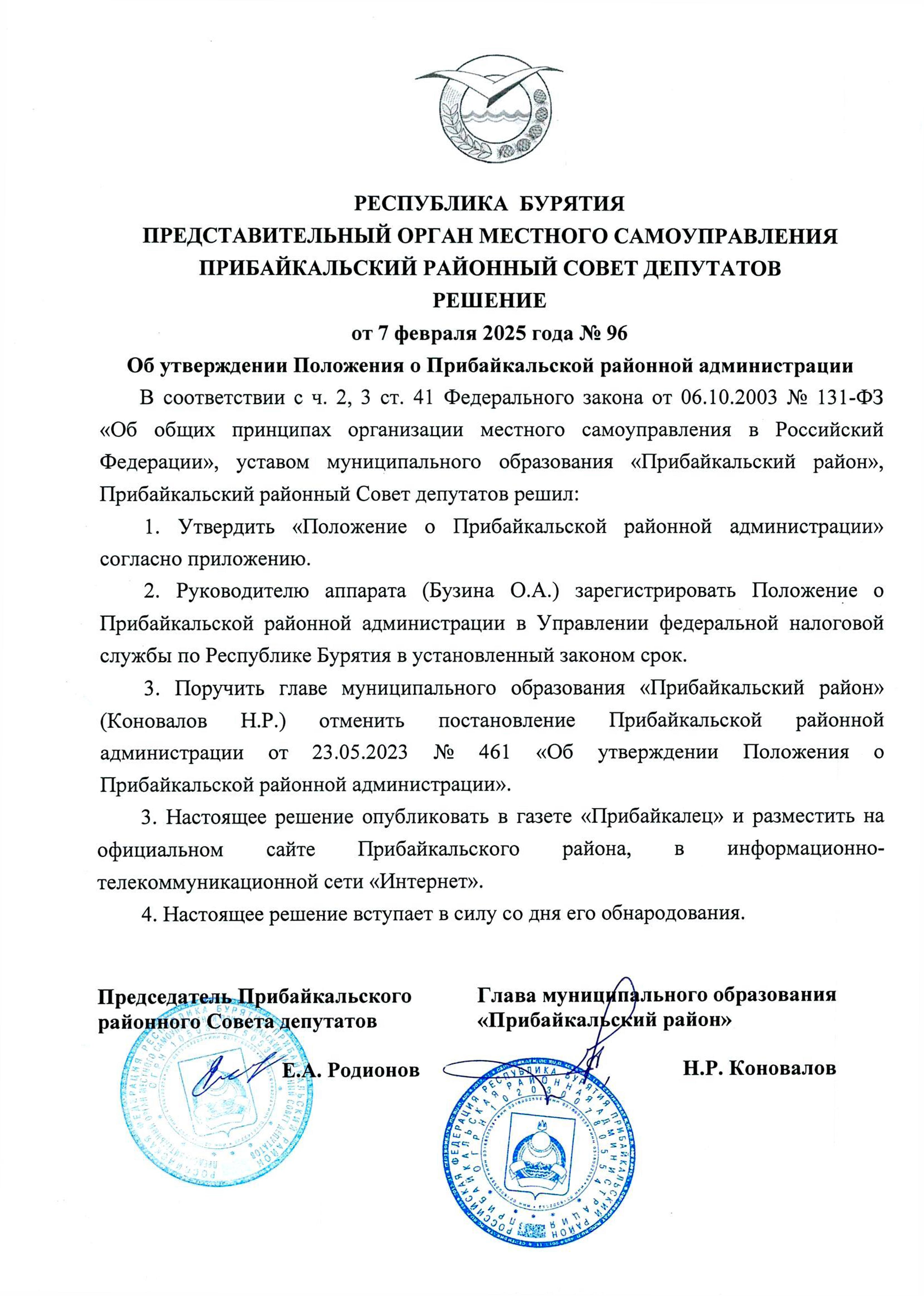 АДМИНИСТРАЦИЯ МО "ПРИБАЙКАЛЬСКИЙ РАЙОН"