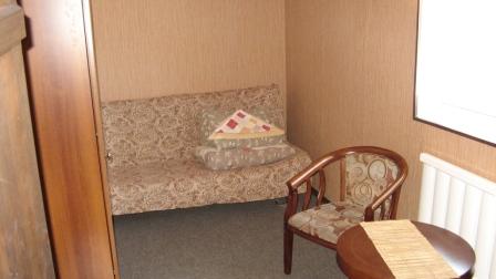 · 7 двух-, трех-местных номеров (Двуспальный диван, кровать, прикроватная тумбочка, шкаф, журнальный столик, кресло, телевизор, чайник, посуда, санузел с душевой кабиной S – 19 кв. м.).
