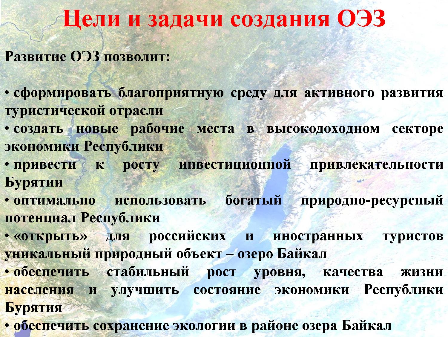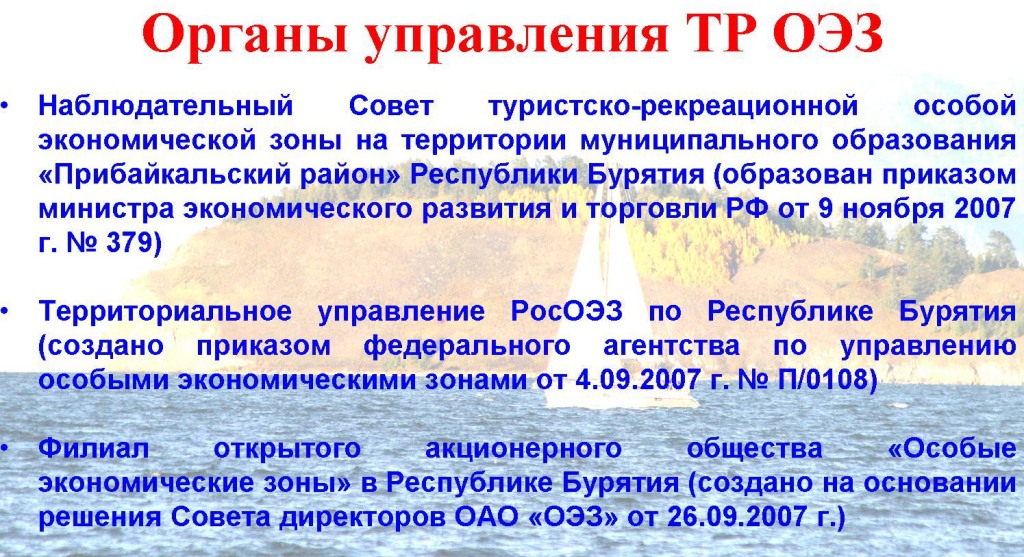 18 января 2007 г. Правительством Российской Федерации принято Постановление о создании особой экономической зоны туристско-рекреационного типа «Байкал» на территории Прибайкальского района Республики Бурятия